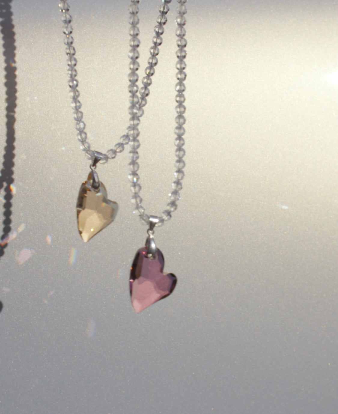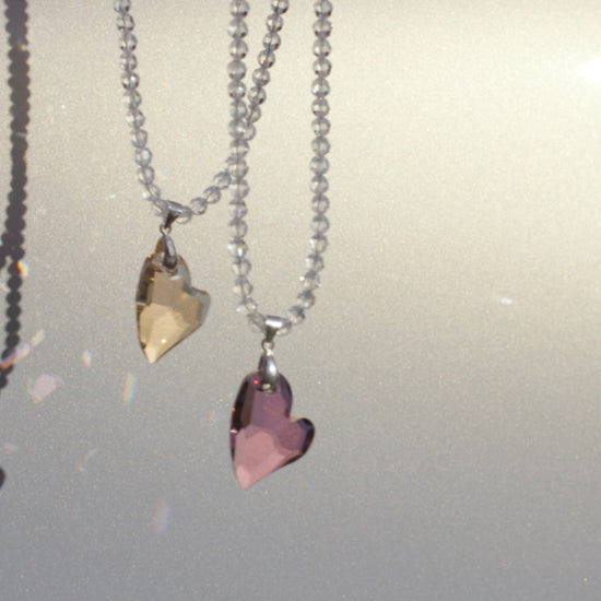 This Swarovski crystal heart pendant catches the light in the best way - glistening through the day and luminous by night. Paired with a glass bead chain and silver-plated findings, she brings just the right touch of sparkle.